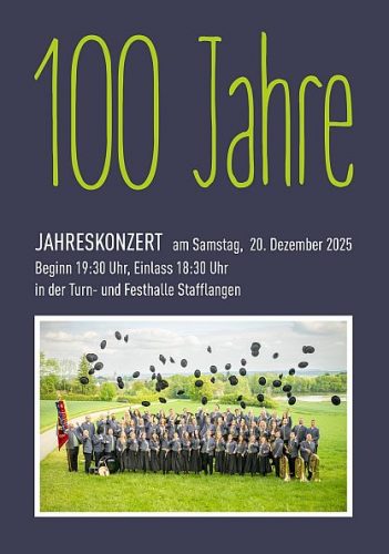 Am Samstag, den 20. Dezember 2025, lädt der Musikverein Stafflangen um 19:30 Uhr in die Festhalle Stafflangen zum traditionellen Jahreskonzert ein. Mit diesem Abend endet das Jubiläumsjahr zum 100-jährigen Bestehen des Vereins.