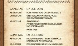 Das Gartenfest beginnt am Samstag, 07. Juli 2018 um 13:00 Uhr mit einem Dorfturnier der örtlichen Vereine u. Gruppierungen rund um den Festplatz bei der Turn- und Festhalle in Stafflangen. Bei deutscher Beteiligung wird um 16:00 Uhr das Viertelfinalspiel übertragen. Am Abend ist die Siegerehrung mit Barbetrieb und stimmungsvoller Unterhaltung…